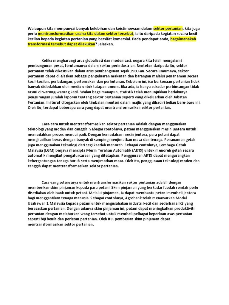 Karangan Spm Kepentingan Sektor Pertanian Kepada Negara Dan Masyarakat - Contoh Karangan Kepentingan Sektor Pertanian Cikgu Farha
